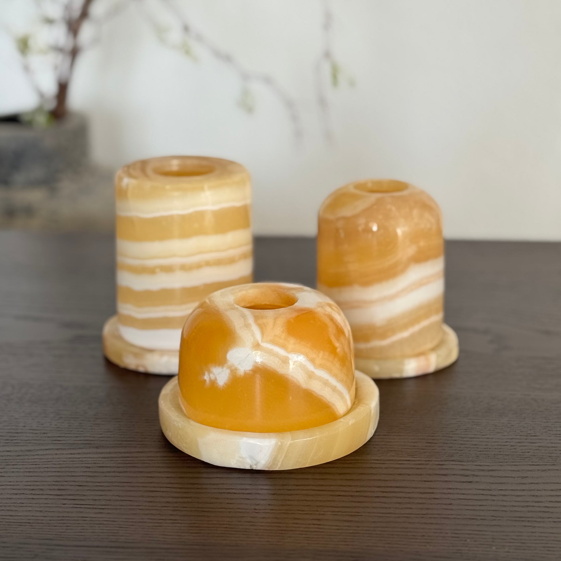 Chaque détail de ces bougeoirs sont pensés pour révéler la lumière : l’albâtre diffuse une lueur chaude et apaisante, créant une atmosphère sacrée et intime. Placés seul ou en duo, ils subliment vos moments de calme ou vos rituels du soir avec élégance et profondeur.